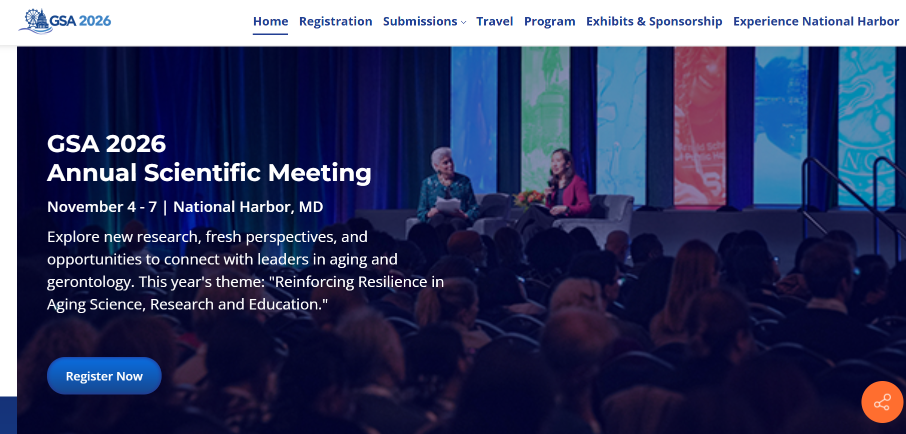 Join global leaders in aging and gerontology at the GSA 2026 Annual Scientific Meeting to explore cutting-edge research, connect with peers, and advance resilience in aging science. Don’t miss this opportunity to collaborate, share insights, and shape the future of healthy aging at one of the field’s premier events. Registration opens March 1.