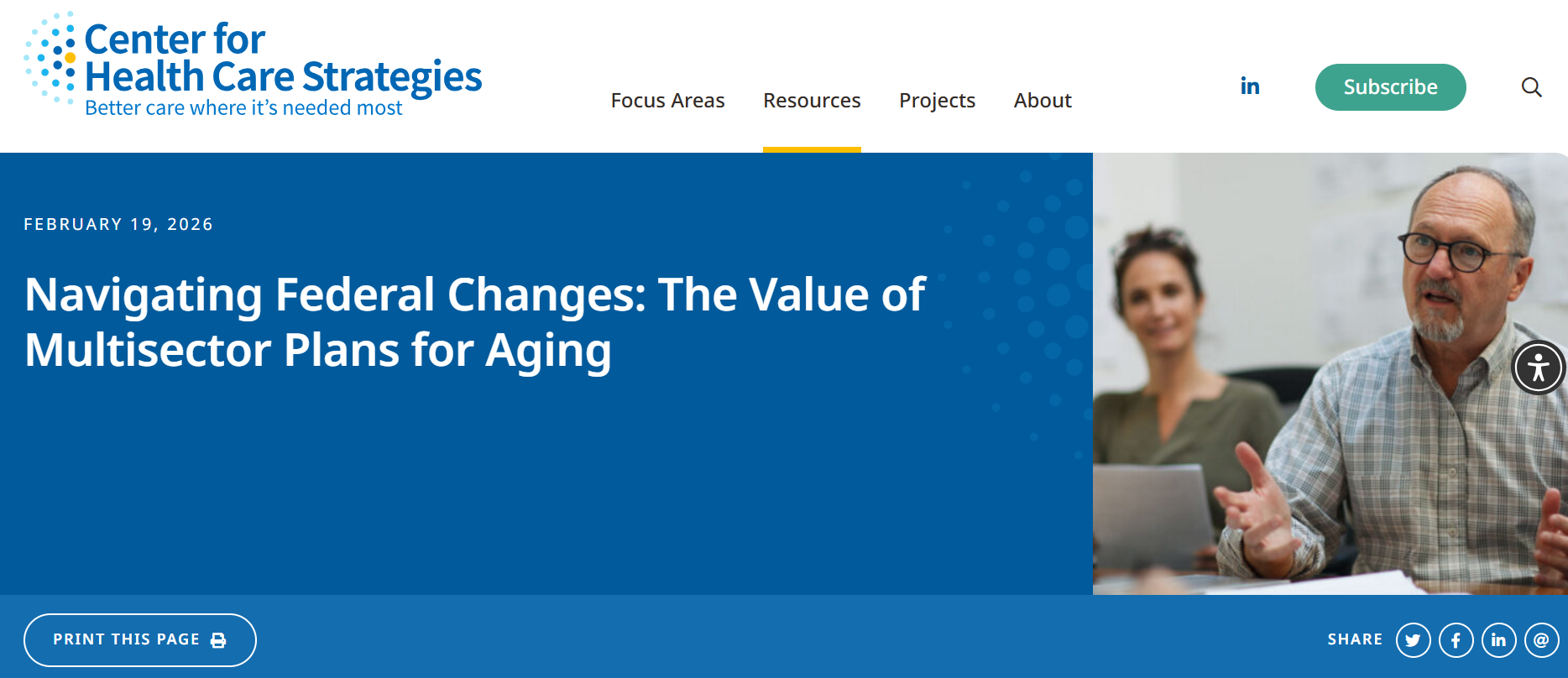 The Center for Health Care Strategies’ recent blog post, Navigating Federal Changes: The Value of Multisector Plans for Aging, explores how states can use Multisector Plans for Aging (MPAs) to respond to shifting federal policies and funding changes under the 2025 budget reconciliation act (P.L. 119-21). As potential reductions to Medicaid, Medicare, SNAP, and ACA premium tax credits threaten coverage and services for older adults and people with disabilities, the blog outlines practical strategies for aligning agencies, braiding funding, coordinating new work requirements, and strengthening cross-sector partnerships. With more than half of states already pursuing MPAs, this timely piece highlights how proactive, cross-agency planning can help states protect vulnerable populations and position themselves for future opportunities. Read the full blog to learn how MPAs can build resilience during periods of policy change.