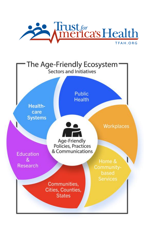 Trust for America’s Health (TFAH) has released Age-Friendly Ecosystem State Snapshots along with updated Age-Friendly Ecosystem one-pagers to highlight the status of older adults across every state and Washington, DC. These resources provide data on the growth of the older adult population, whether states have a Multisector Plan for Aging (MPA), and the extent of age-friendly adoption across public health, health systems, communities, states, and academia. Designed to support advocacy and cross-sector collaboration, the snapshots and ecosystem materials offer valuable tools for advancing age-friendly initiatives and strengthening multisector partnerships. Explore the full set of resources to see how your state compares and identify opportunities to advance aging-focused policy and collaboration.